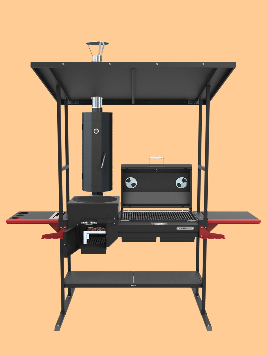 Искандер 400 Комфорт Эйр с крышкой-гриль, чугунной решеткой и коптильней — это мобильная уличная станция, созданная для тех, кто ценит вкус еды на огне, стабильную конструкцию и широкие возможности приготовления. Готовьте плов, жарьте мясо, запекайте овощи или коптите рыбу — все это возможно в одном устройстве.